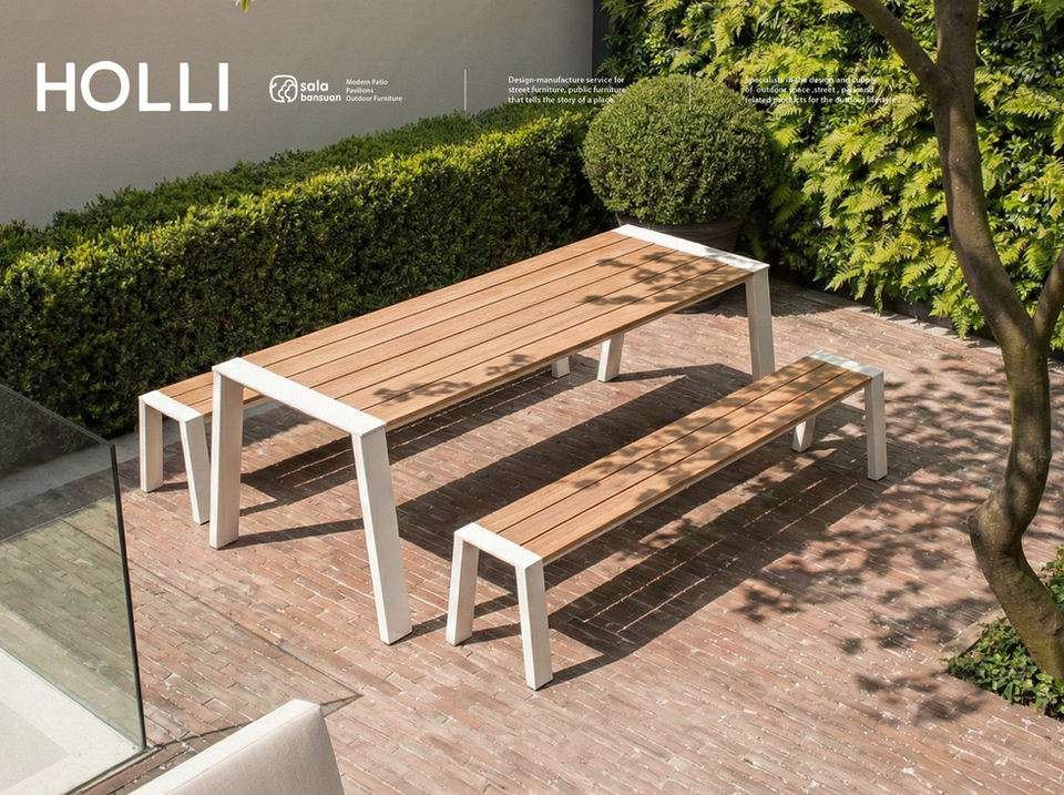 Solid Wood Outdoor Furniture - Teng Wood Wooden bench with mixed concrete legs, simple shape, suitable for work. that need strength and durability Can be placed in a variety of ways Compatible with all areas